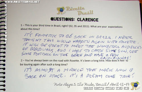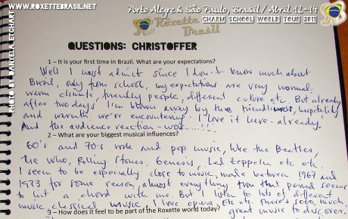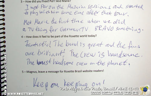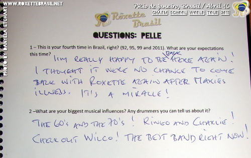 We proudly present the Brazilian questionnaires that RoxetteBrasil.net did with all the band members during their stay in South America. All them responded promptly and personally commented their answers during the flights and hotels. A big hand to Dany Etchart who sent us this interview!