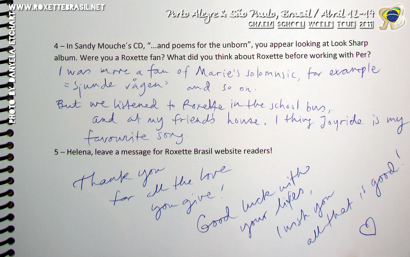 RXBRA: Helena, leave a message for Roxette Brasil website readers!
