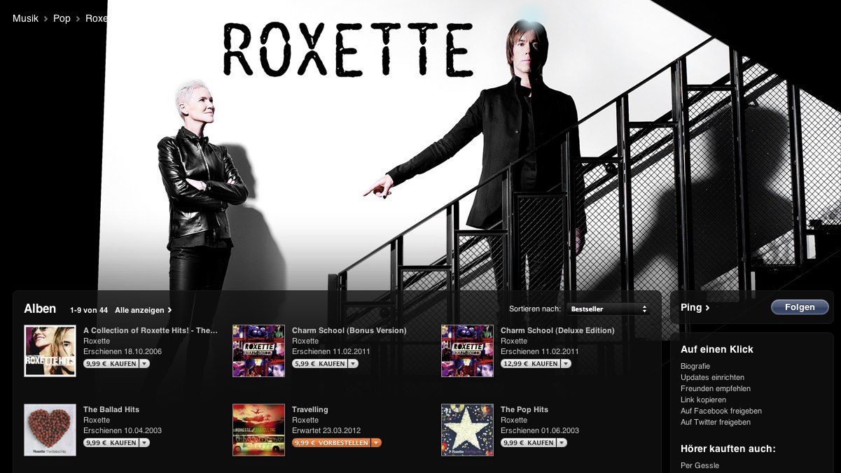 Roxette are nominated for the German Echo award with their album “Charm School”. The category Roxette is nominated is called “Gruppe International Rock / Pop” – best international Rock/Pop group. The award is really important in Germany, as much important as the Grammys in the US. There’s not a jury choosing the winner. The sales charts decide the nominees and in the end – the winner.