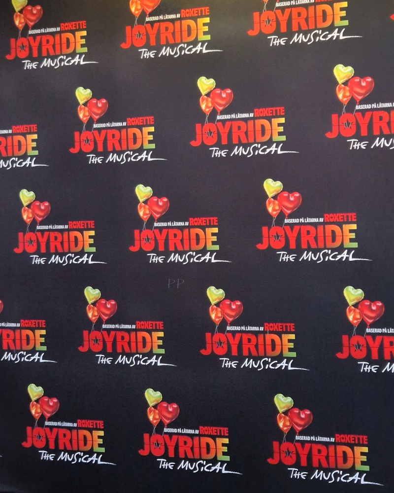On 11th September, it was raining cats and dogs all day. The theatre staff built the red carpet area with a JOYRIDE sign, a photo wall and lots of heart-shaped balloons. Some tents were also set up to prevent people from getting soaking wet. Reporters and photographers stood next to the photo wall. Fans arrived first at the theatre – from Germany, Poland, Hungary, the Netherlands and probably from some other countries as well. We were curious about who would walk the red carpet – which was dark grey (maybe because of the rain, so that it doesn’t look awful when you step on the red carpet with your muddy shoes). Guests were arriving and even if there was a roof above the carpet, most of them didn’t reach the photo wall, but entered the theatre at the first doors. This is how we – who were standing behind the photographers at the photo wall – missed seeing Micke Syd and his wife, Helena arriving, for example. (But we could say hi to Micke during the break at least.) We were very happy to see Micke Bolyos. Some fans stepped to him, talked to him briefly and asked for a photo as well. Dea Norberg was there too. Besides her clear relation to Roxette, Jessica is her best friend, so it’s obvious she came to see her in Stockholm too. Among the guests there were Tomas Ledin, Magnus Uggla, Fredrik Etoall, Thomas Johansson, Mats Olsson and more famous Swedish artists and celebrities. Jane Fallon wasn’t there at the premiere. She was in Stockholm in August and then she was interviewed by TV and radio. Lena Philipsson came with Marie Dimberg. She is friends with Hanna Hedlund, so she was probably also excited to see her friend on stage. Everyone was thrilled to see Per on the red carpet and he was said to appear there at 19:20 (the premiere was set to start at 19:30), but it was so busy everywhere, it was hard for him to get there on time. He was inside the theatre and because of the rain he came out to the photo wall from there. The bell was ringing already 3 or 4 times to signal the start of the performance, but Per still hasn’t gotten to the photo wall. I decided to get inside the theatre after director Guy Unsworth left the red carpet. It was already 19:30. Most of the people were already sitting inside. When I walked towards the entrance, I saw Åsa and Per started to walk towards the exit. Then I quickly decided to go back to the photo wall and check out what was happening there. Photos of Per and Åsa, as well as Gabriel and his girlfriend were taken. Marie Dimberg came out again too. PG was also briefly interviewed by a reporter for SVT. It all didn’t take longer than 3-4 minutes. Lena was also waiting for them so that they could all enter together and find their seats in row 8. Everyone else entered the theatre in the end and got to their seats inside, so the musical could start with a little delay.