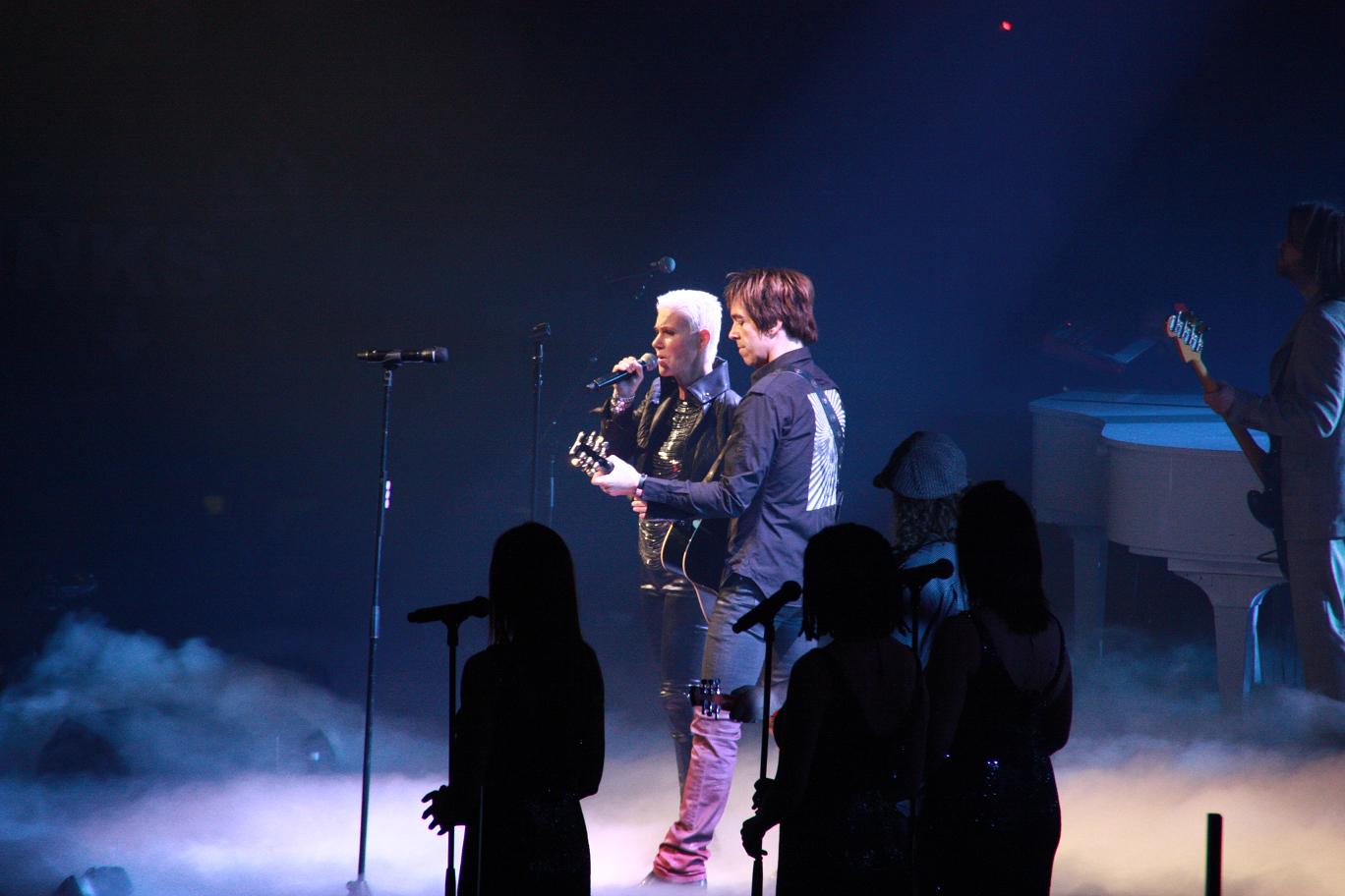 I was there – and when I came out I wish hadn’t gone. I can think about the Rox performance as long as I want – it doesn’t get better. Marie looked uncomfortable, nervous and actually as if someone FORCED her to come on stage. First verse of WICF got lost again, problems during LTYH, too, on which Per helped her (great guy!!) and most of the time she actually didn’t sing at all – her throat problem must be heavy!! I really hope she gets well soon.