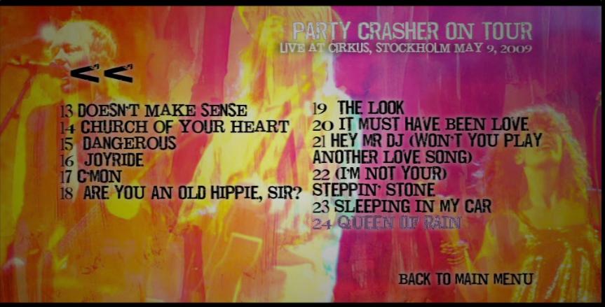 – the interview parts with Per & fans pop up many times through the Cirkus concert – after “Dressed for success” [Why did Per decide to go on the club tour?], “The Party Pleaser” [Rosina & Dany spotted; Per tells more about how he appreciates the fans – especially those from South America], “She doesn’t live here anymore” [Interview with Ezequiel in Swedish; Per’s story from Warsaw gig about some people from Siberia who came for the concert], “Late, later on” [The idea of this tour], “Do you wanna be my baby?” [Roxette/Gessle music as the soundtrack of our lives; Dany wants her husband to forgive her! :D], “Doesn’t make sense” [The future?], “Joyride” [The little concerts suit Per the best], “Are you an old hippie, sir?” [About “The look”], “It must have been love” [The tour experiances], “Queen of rain” [Per tells more about the band members; fans from Spain, Argentina, Brazil and Mexico after the Cirkus concert]
