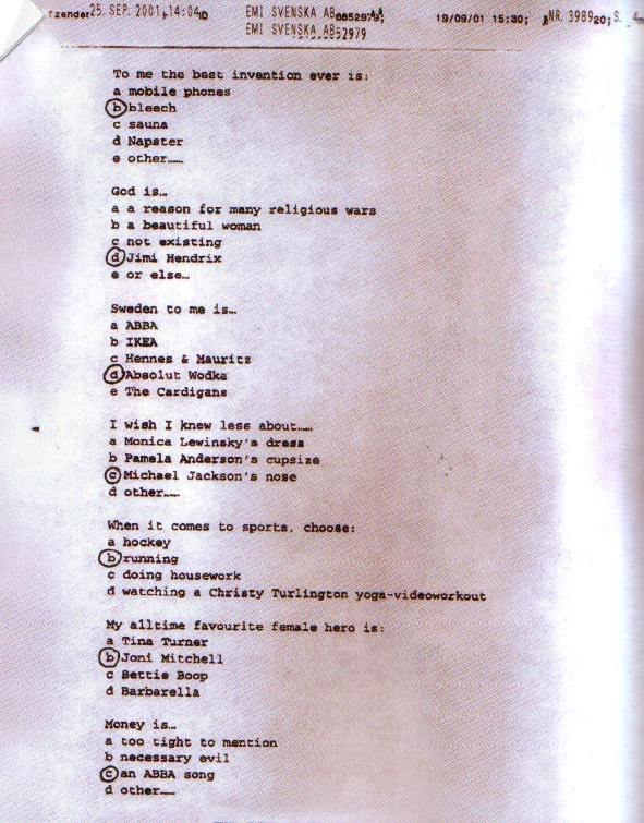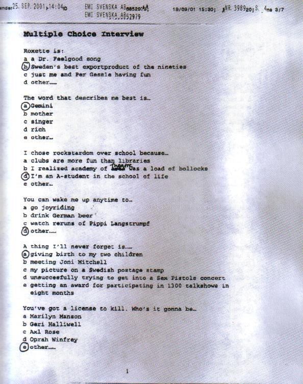 Sven asks Per about the international release of Room Service. Mr. G says of course it has tough competition when you compare it to Look Sharp! or Joyride, but it went very well and they had lots of success with the three singles from it.