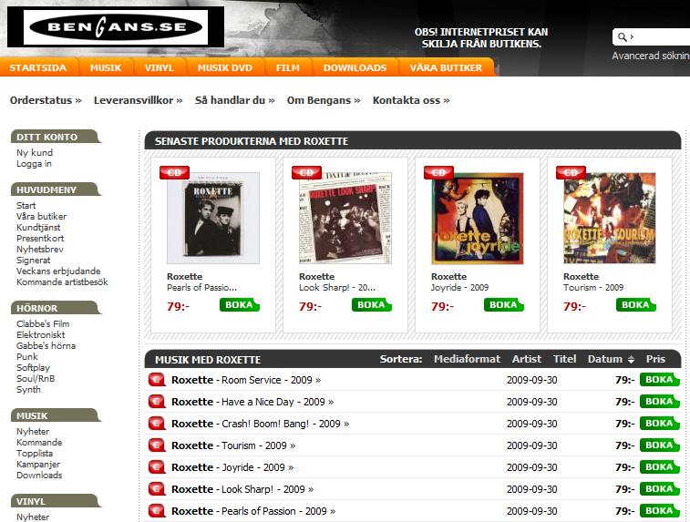 The most important Swedish e-shops put Roxette 2009 re-releases on their lists.