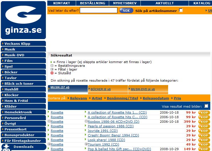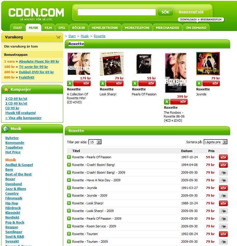 On the other hand, if you want to buy Roxette orignal releases very cheap and you are Swedish citizen, there is also a chance. Ginza.se has started sale 29SEK for “Pearls of passion”, “Look sharp!”, “Joyride” and “Crash!Boom!Bang!” and Tourism for 49SEK.